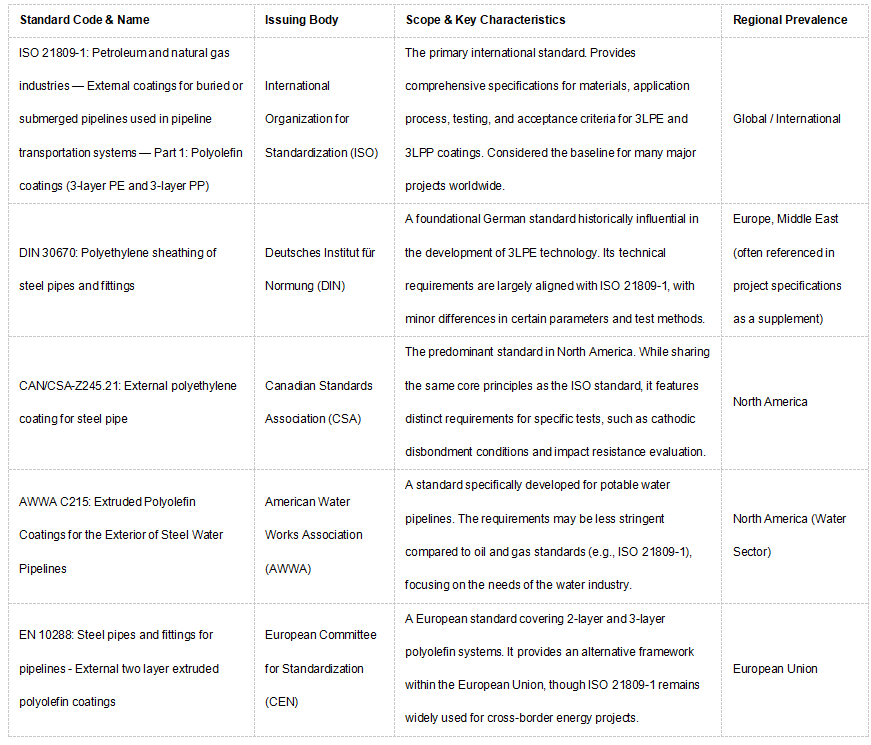 3LPE Coated Steel Pipe Compliance Standards Chart